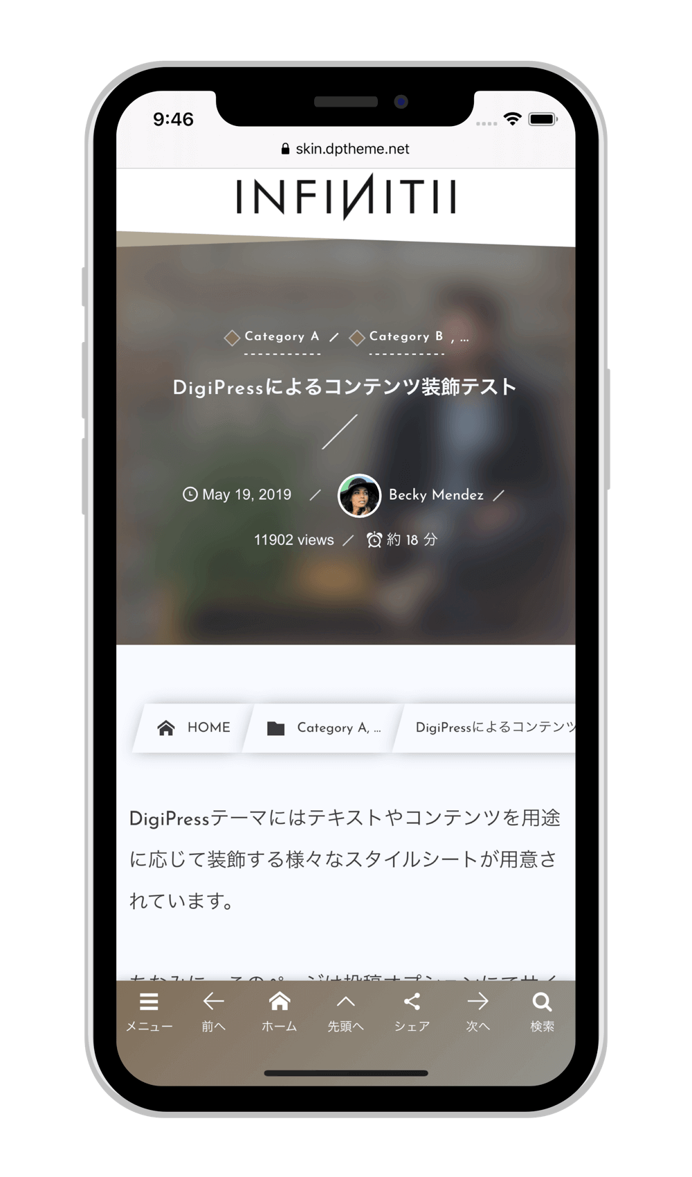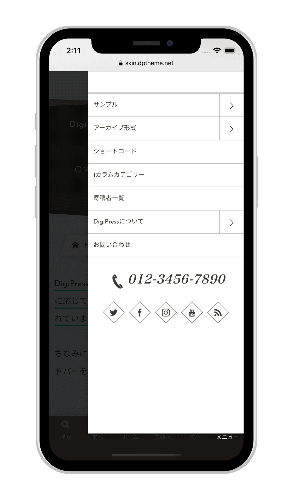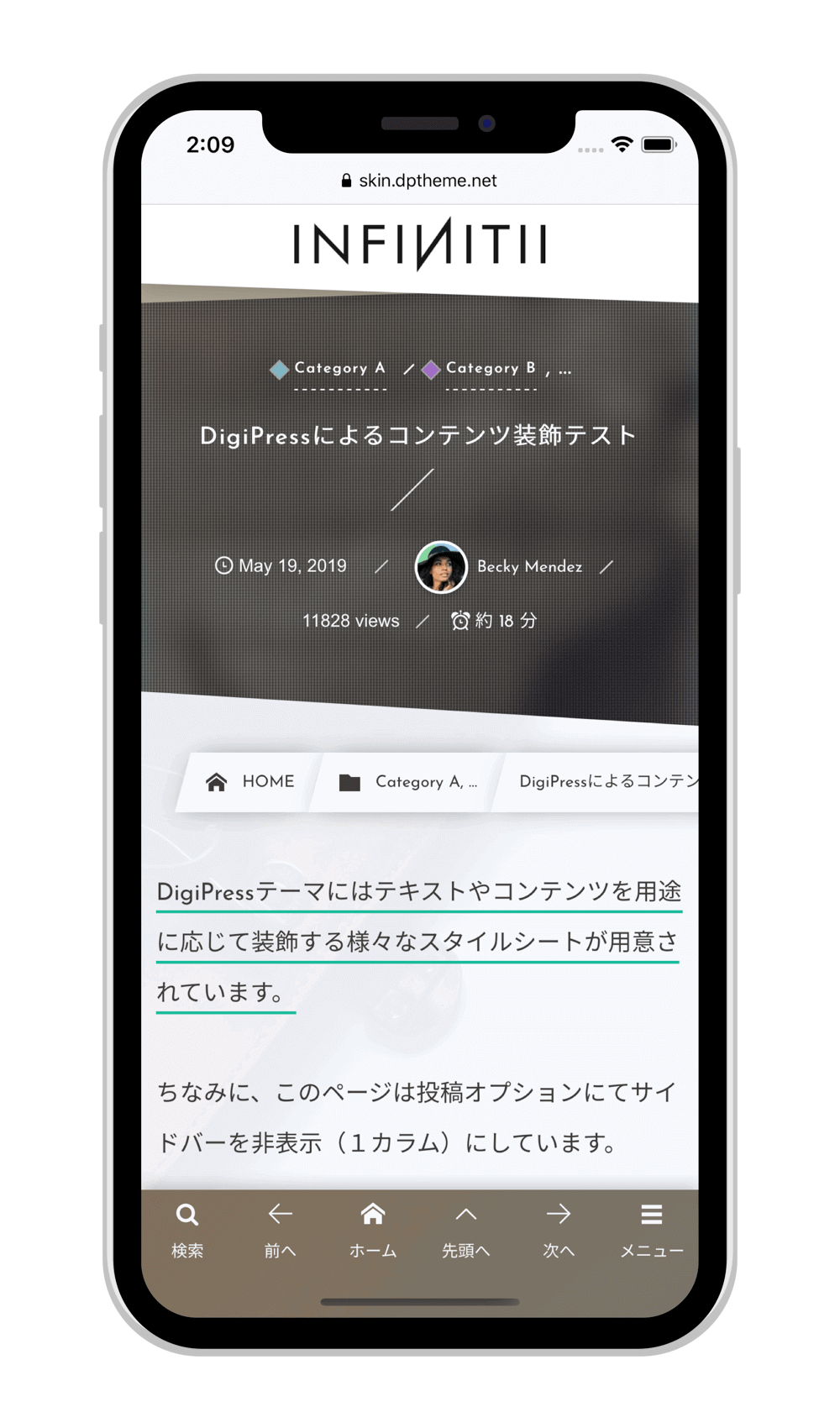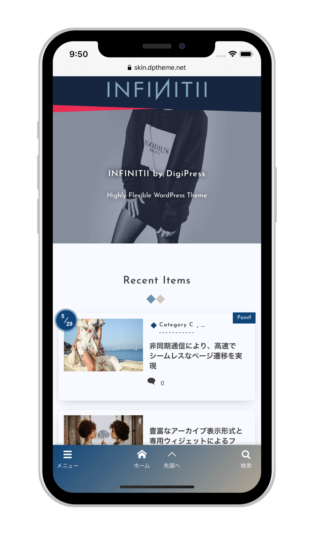 スマートフォンではモバイルに特化して無駄なコードや情報を省き、軽量化、最適化されたモバイル専用テーマにて表示します。