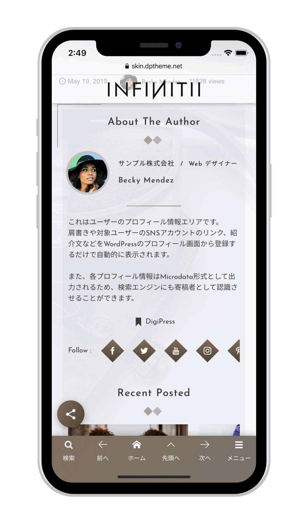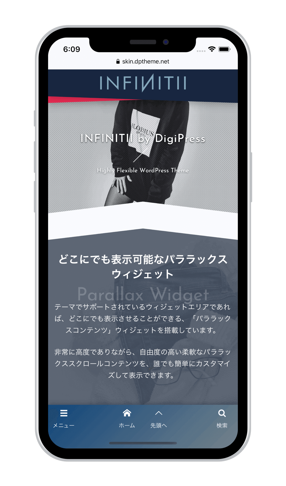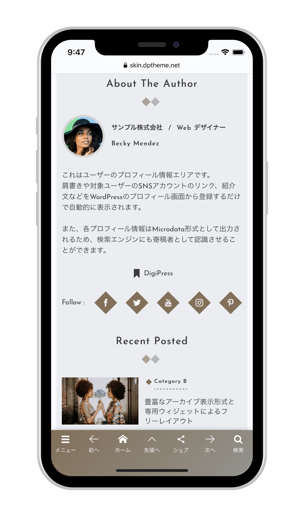 他の一般的なレスポンシブデザインにしか対応していないテーマと違い、PCからのアクセスとはテーマ自体が異なるため、単純なレスポンシブ表示では到底実現できない究極のモバイル要件にも対応しています。