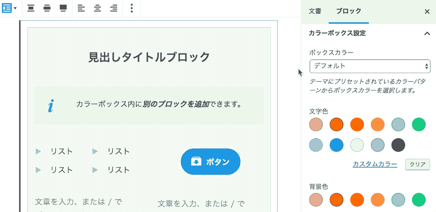 カラーボックス内にはさらに様々なブロックを自由に追加して独立したコンテンツを表示できます。